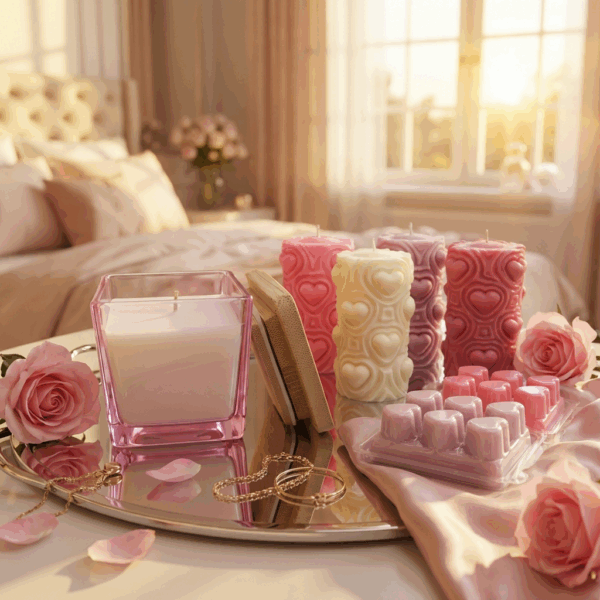 Snap-apart heart melts in our Romance Quartet scents — six flirty, soy-waxed darlings for instant romantic glow.