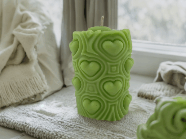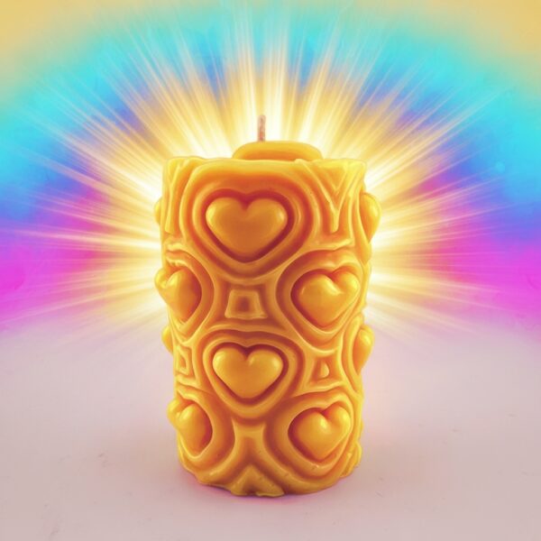 Indulge in the romantic elegance of our Hearts & Swirls molded candle, hand-poured with an organic beeswax-soy blend for a clean burn. Each 1.75″ x 3″ candle features an intricate hearts-and-swirls design that casts a soft, flickering glow—perfect for creating a serene atmosphere while you read, relax, bathe or meditate. Fragrance Options: Choose from Lemongrass, Rose Petals, Crimson Cherry Crush, or Limoncello (we update scents frequently). Our specialty is making candles on-demand, please drop us a line and let us know which scents and colors you would like, and we will make your waxy wishes come true.