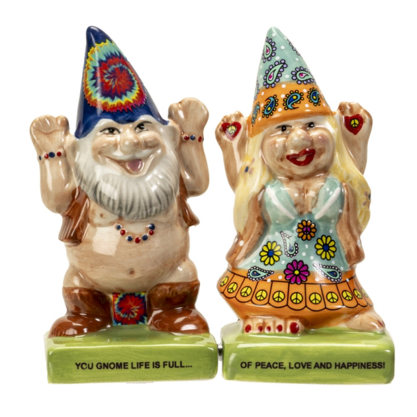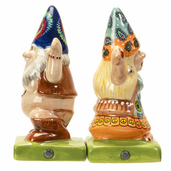 Hippie Gnomes Salt and Pepper Shakers – Retro Ceramic Novelty Set (2.25″ x 2″ x 4″)