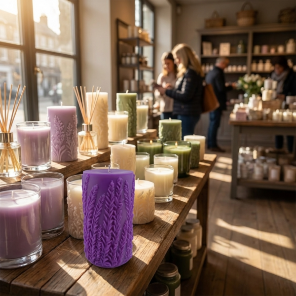 Our hand-made lavender candle is 3.75-inches tall, with a 2-inch diameter, with a textured, botanical design. Enjoy a total burn time of approximately 35-40 hours and a cotton wick for a clean, cozy glow. Perfect for decor or gifting.