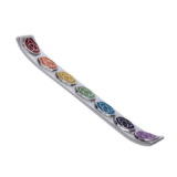 This metal incense tray combines the timeless Celtic Trinity knot with vibrant chakra colors, featuring seven colorful rose-like symbols aligned along its curved 9.5″ length for stylish, balanced burning of your favorite incense sticks.