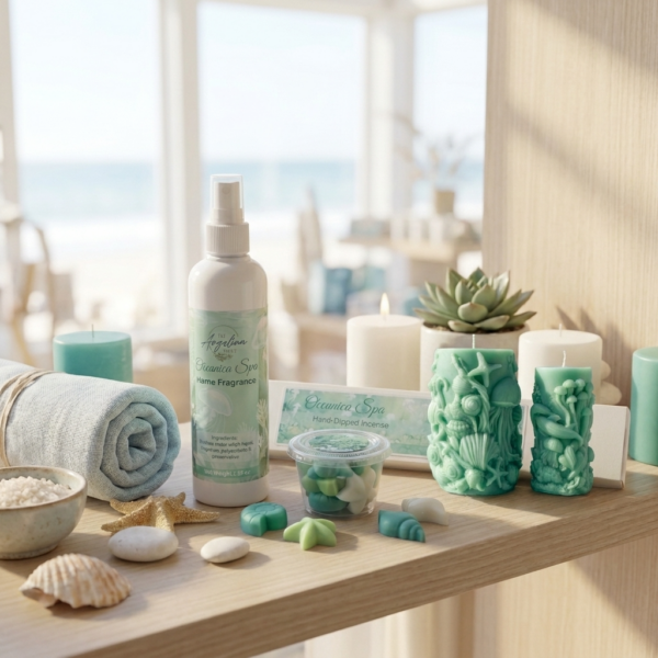 Enhance your coastal ritual by pairing these pillars with the Oceanica Spa Wax Melts (drop a few in your warmer for continuous fragrance), the Home Fragrance Room Spray, or the Incense.