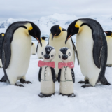 These tuxedo penguins are mid-century perfection! Standing ~5″ tall, the pair features glossy black-and-white bodies, crisp pink bow ties, round heads with big expressive eyes, tiny beaks, and a charming side-by-side pose—like they’re dressed for a fancy waddle.
