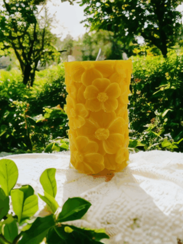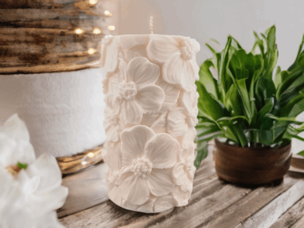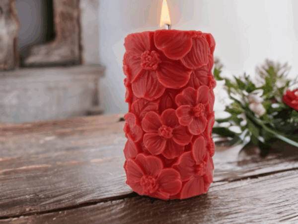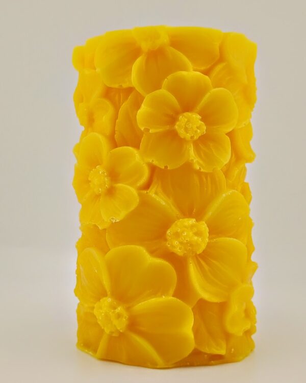 Handcrafted 4.25-inch tall, 2.5-inch circumference pillar candles with a detailed floral pattern. While we have a few in stock, we are currently taking on-demand orders while we build out our inventory. Please let us know what your heart desires and we will make it for you. angelina@theangelinastore.com