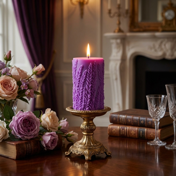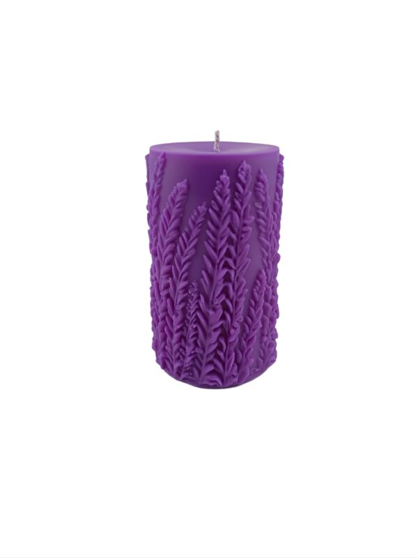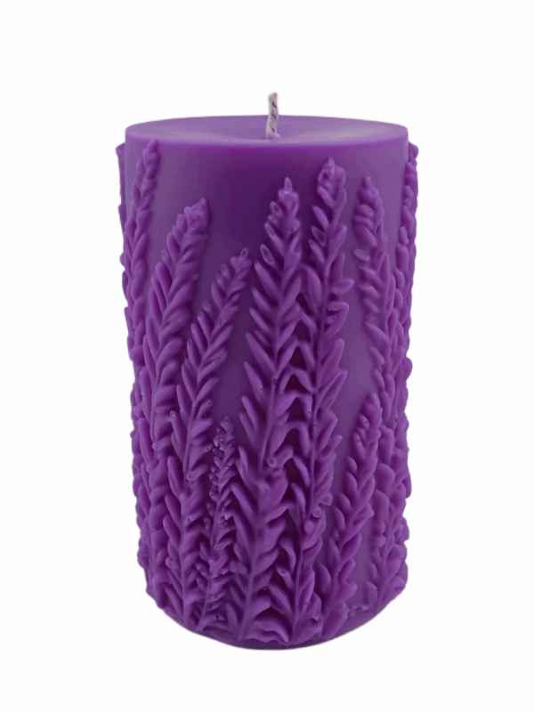 Our hand-made lavender candle is 3.75-inches tall, with a 2-inch diameter, with a textured, botanical design. Enjoy a total burn time of approximately 35-40 hours and a cotton wick for a clean, cozy glow. Perfect for decor or gifting.