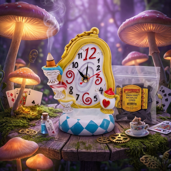 Pair it with your backflow cones (try Cherry Vanilla or Mango Passion for a sweet Wonderland twist). A fun, functional piece that’s equal parts timekeeper and tea-party enchantment.