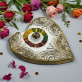 This heartfelt incense holder is shaped like a classic heart and adorned with a shimmering mosaic design in vibrant, multicolored tiles, perfect for burning your favorite incense sticks while adding warm, loving energy to any space.