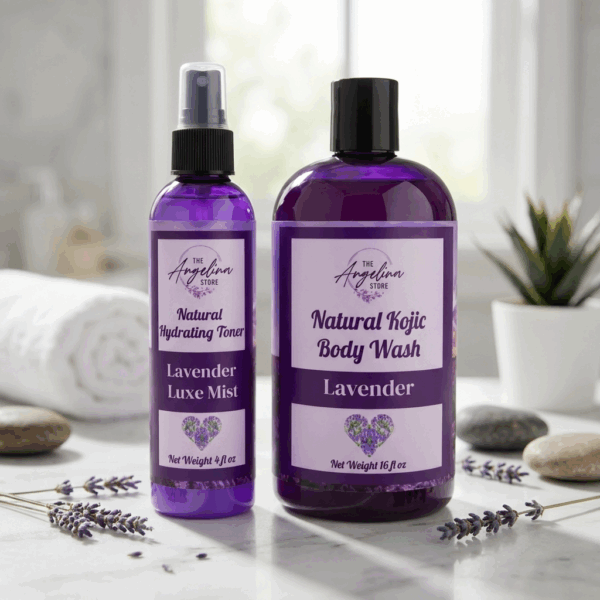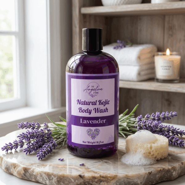 Revitalize your skin with The Angelina Store’s Natural Kojic Body Wash, infused with soothing lavender for bright, even-toned skin. This gentle, plant-based cleanser, scented with pure lavender essential oil, uses Kojic Acid to cleanse deeply while nourishing with cucumber, oat, and rice extracts. Lavender calms skin irritation, promotes relaxation through aromatherapy, and offers medicinal benefits like stress relief and antibacterial properties. Eco-friendly, pH-balanced, and free from harsh chemicals, synthetic fragrances, and parabens, it’s perfect for face and body.