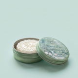 The elegant embossed bar (approx. 1.5 oz / 42 g net weight) comes nestled in a reusable green tin with a lovely ocean-themed lid — perfect for travel, gym bags, or keeping on your bathroom counter.