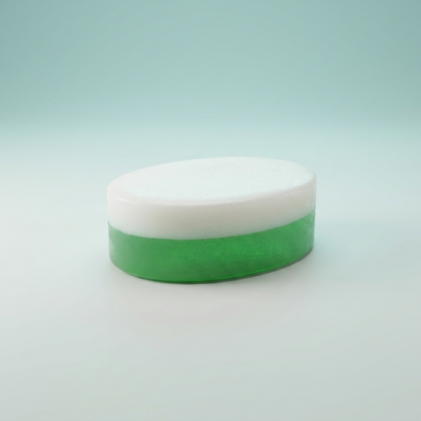 - One two-tone glycerin soap (~3 oz) made with white and glycerine soap bases, tinted a soft sea green. It creates a gentle, moisturizing lather scented with the Oceanica Spa fragrance — crisp ozone and linen, authentic sea salt, cooling eucalyptus, delicate freesia, fresh cut grass, white tea, lavender driftwood, and soft Japanese cherry blossom.
