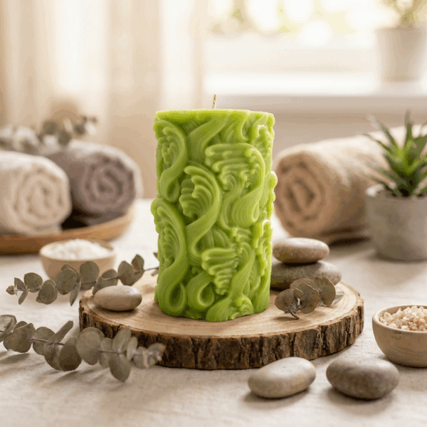 Handcrafted 4.25-inch tall, 2.5-inch circumference pillar candles with a detailed pattern of waves & swirls. We are currently making these on-demand while we work hard to add to our inventory. Perfect for decor or gifting. If you have have a particular scent and/or color in mind but don’t see it in our inventory, or you see one you like that is sold out, drop us a line and we will make to your specifications. angelina@theangelinastore.com