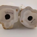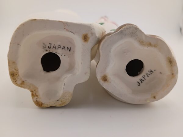 The taller cat has that confident, alert expression, while the smaller one looks utterly content with her lashes and gentle head tilt. Marked “JAPAN” on the bases (with slight variations in stamping), they’re authentic mid-century exports that collectors love. Corkless design (open bases for easy filling and cleaning—no original corks, as is common for larger figural sets like these).