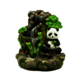 Adorable cold-cast resin panda backflow burner from Fantasy Gifts: panda sitting with bamboo, waterfall cascading behind for dramatic downward smoke flow. Hand-painted details, compact 5 x 4 x 4 inch size—cute, functional, and eye-catching for any space.